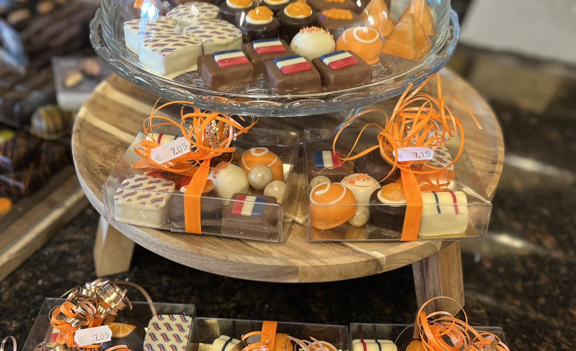 Kom donderdag en vrijdag uw oranjegebak halen in de winkel! Tompouches, oranje-cupcakes en oranje-bonbons!